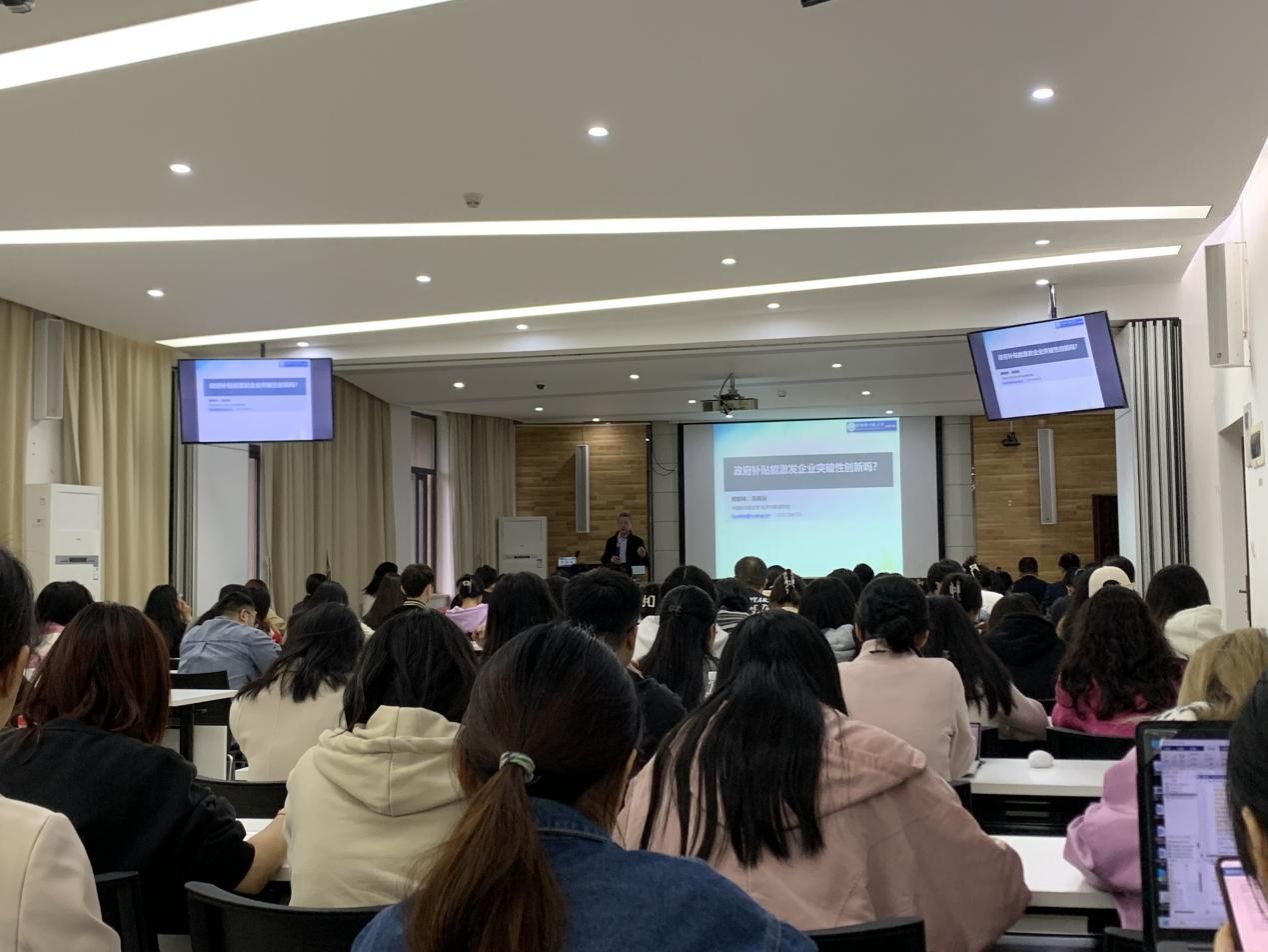 柳卸林教授以发表在创新管理领域的国际顶刊Research Policy上的论文《政府补贴能激发企业突破性创新吗?》为主讲内容,讲解了本篇论文的实践关切、理论部分,分析了中央补贴与地方补贴、本地产业集聚优势状况不同对于主效应的调节作用,展示了实证研究的过程和结果,最后对研究结果进行了讨论。