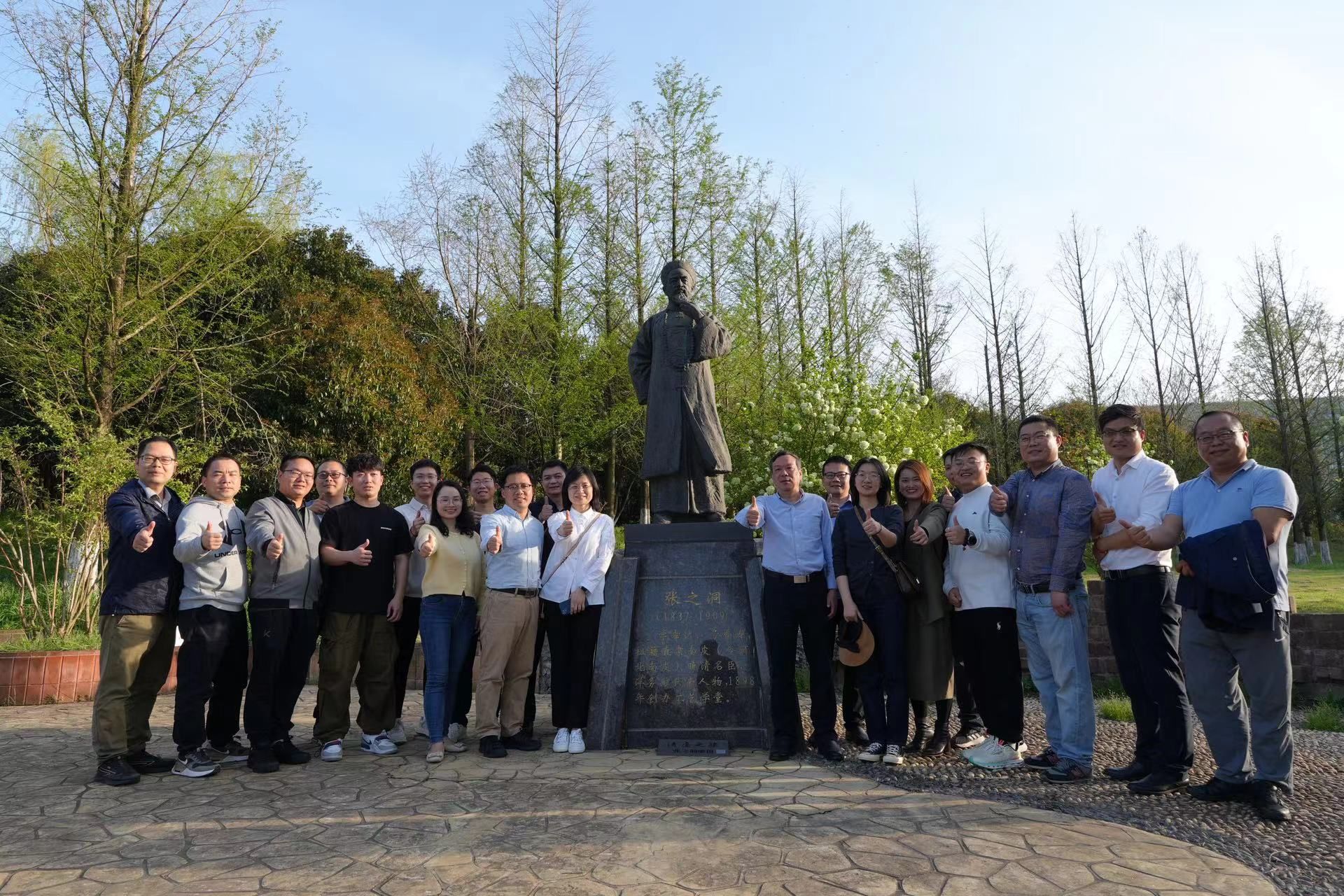 游学活动第三站是沿着校友名人园、廉园、张之洞雕像、沁湖岛、樱花大道的参观线路进行游园。张继才沿路向介绍了我校校友名人的事迹、廉园的建造历史、许白昊烈士的故事以及张之洞雕像的由来。师生们一路畅聊,共赏优美校园春日美景。