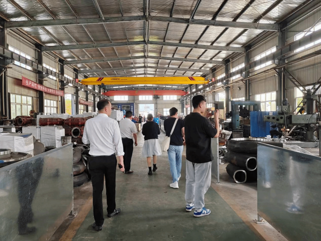 登冠品信公司总经理吴登文等人对刘勇教授师生团队表示热烈欢迎,带领参观了公司的生产厂房。总经理吴登文、销售总监陈晖介绍了各类水泵零部件,水泵产成品,和生产流程解答了学生对于水泵制造与维护的相关问题,学生们对水泵产品有了更为直观的感受,增加了对水泵产品的认识。