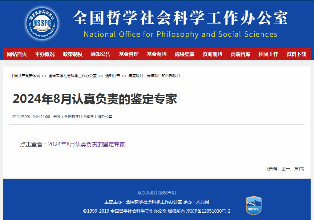 近日,全国哲学社会科学工作办公室公布了2024年8月“认真负责的鉴定专家”名单,必赢官网刘海兵教授再次入选。