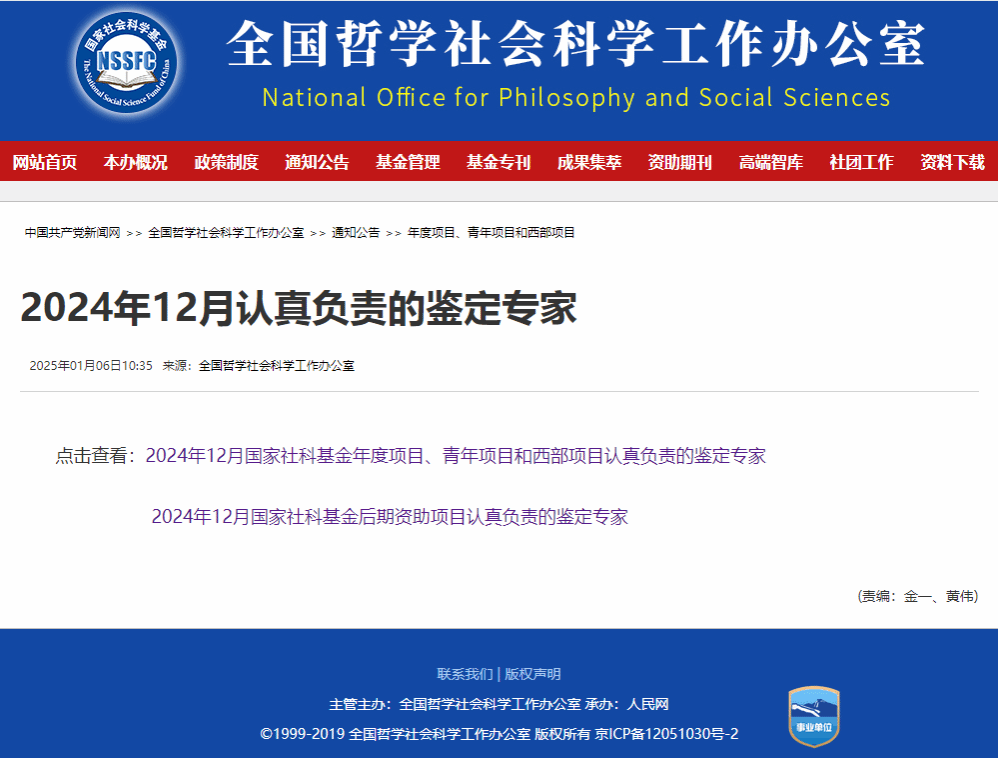 近日,全国哲学社会科学工作办公室公布了2024年12月“认真负责的鉴定专家”名单,刘海兵教授再次入选。