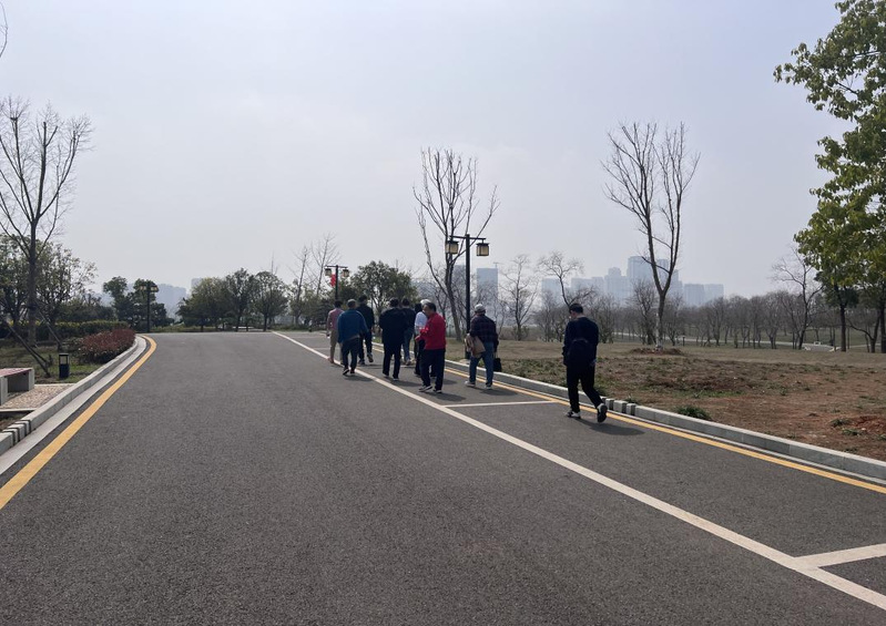 行进中,教职工们沐浴微风轻絮,洋溢欢声笑语,大家或成群结伴,或三两为伍。有的趋步疾行,争先恐后;有的凌波微步,不疾不徐。老师们呼吸着大自然清新的空气,欣赏着大自然绿意盎然的湖光山色,惬意无限!
