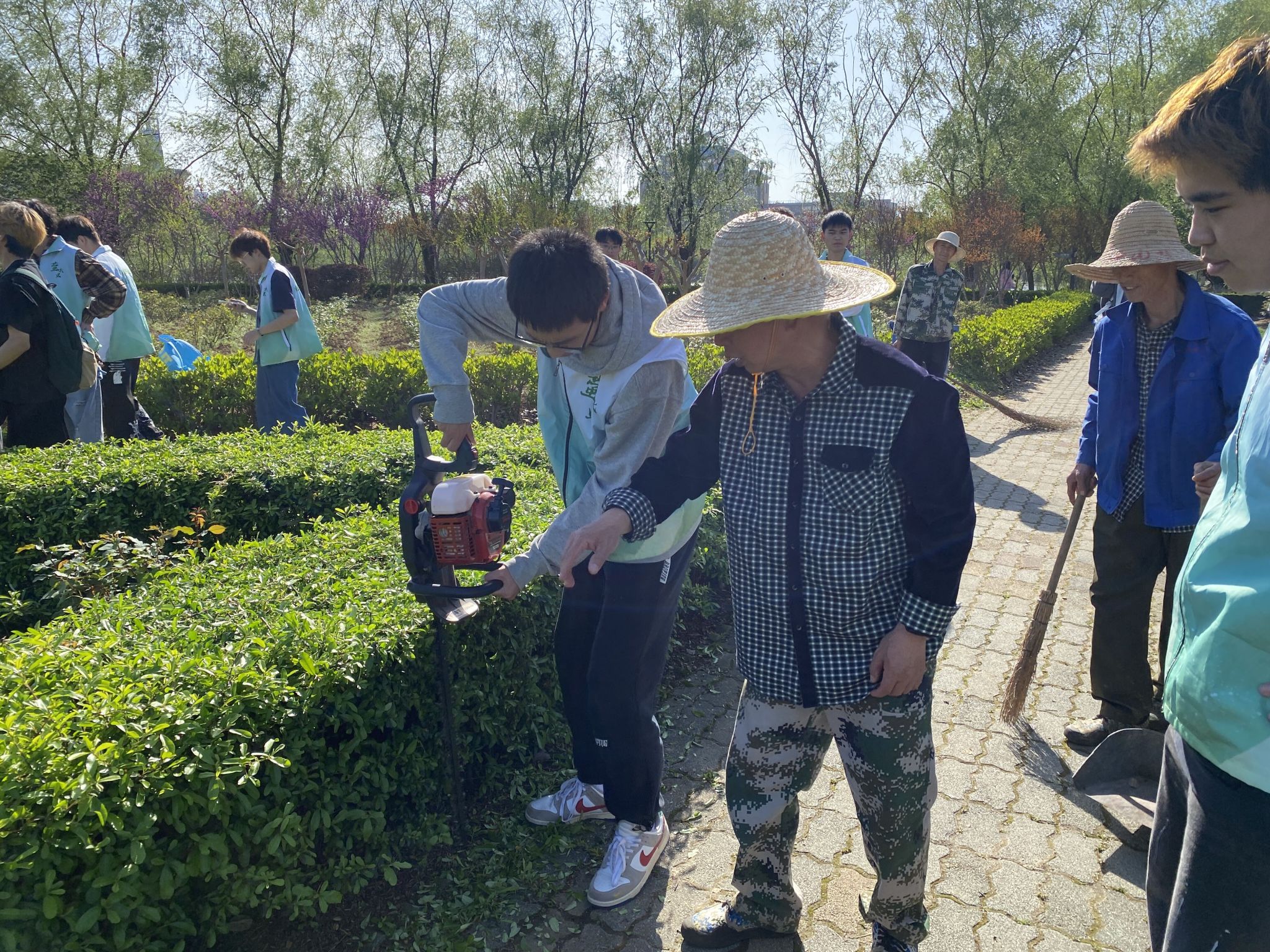 “师傅,我干得还不错吧!”窦薇在修剪完一片树丛后向工人师傅询问道,师傅竖起大拇指以示赞扬。“修剪树枝的电锯很重,拿起来操作一会就会感到很累,师傅们日复一日地进行劳作,让我由衷的佩服,我更加感受到了工人们劳动的艰辛,对劳动也有了更加清晰深刻的认识。”工商2303石瑞淇感慨道。
