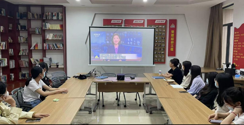 肖志昕对《习近平给北京科技大学的老教授回信》以及习近平总书记视察中国人民大学重要讲话进行领学,并组织同学们集体观看相关视频。