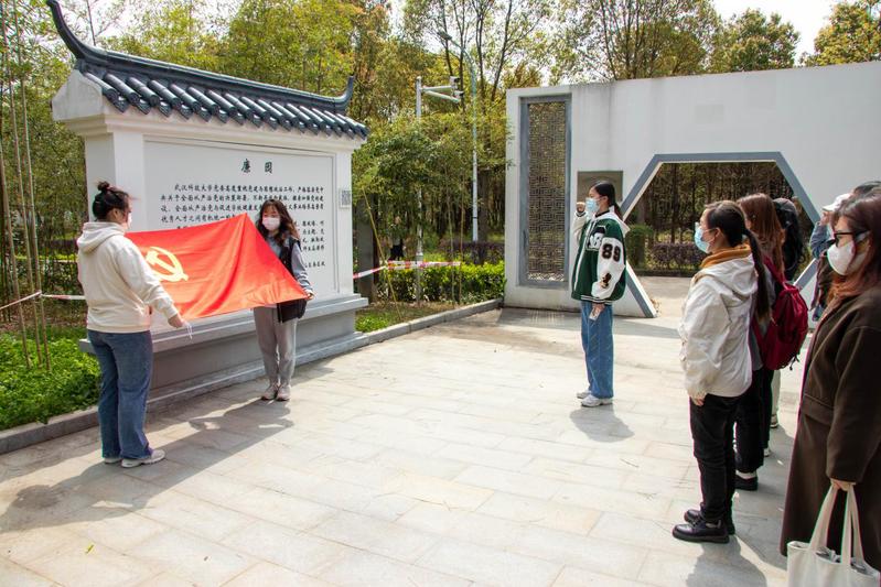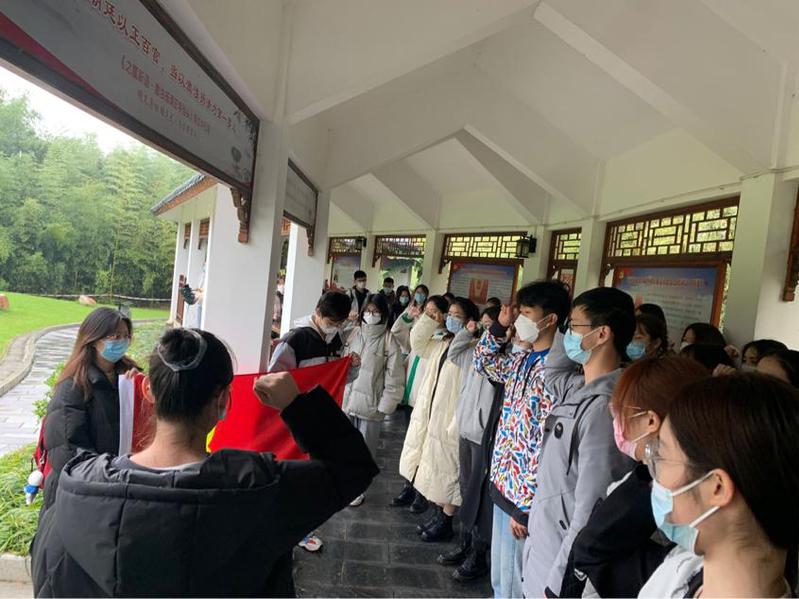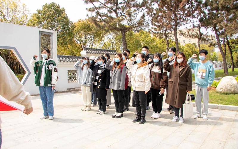 “想要了解党和拥护党就不能缺少对党史党务的学习,必须固本强源,从实践抓起。” 物业管理专业本科生党支部书记唐维意组织引导全体参与人员前往革命烈士许白昊雕像处,讲述了烈士许白昊的个人履历,介绍了许白昊精神,随后引导大家前往廉园石碑处进行入党宣誓。她强调,入党宣誓是一项神圣而又庄严的活动,对党徽佩戴位置、宣誓誓词内容、宣誓手势姿势、宣誓标的物都有严格和规范的要求,在唐维意的逐句领读誓词下,全体预备党员左胸佩戴党徽直立面向党旗,举右手握拳庄严宣誓。