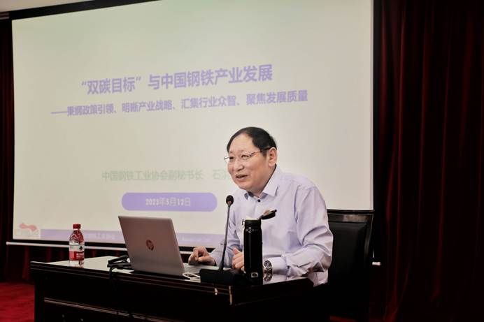 石洪卫副秘书长从钢铁材料的特征与钢铁产业发展的规律性经验、我国钢铁产业发展的政策取向、关于“双碳目标”与中国钢铁、对我国钢铁产业发展的主要观点,以及钢铁行业运行总结等五个方面系统全面地阐述了中国钢铁产业发展与目标。他指出,钢铁是工业的基础,钢铁材料是制造业的物质基础,钢铁工业是制造业的支撑产业,而建设社会主义现代化强国离不开制造业的支撑。在讲到未来钢铁企业格局时,他认为主要存在特大型行业引领型企业、专业化行业引领型企业、大型区域性主导型企业和中小型区域性配套型企业等4种典型特征的企业。